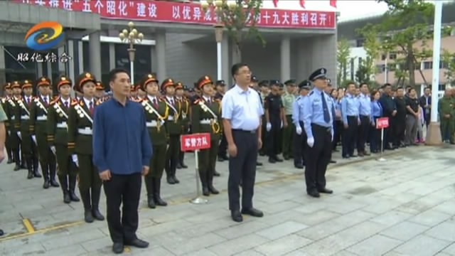 区领导贺旭红、杨槐林参加升旗仪式。