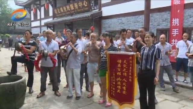 一大早,村民们来到昭化古城游客中心,敲起锣鼓、吹起唢呐,把写有“天灾无情 人间有爱 情系百姓 共渡难关”的锦旗一路送向昭化镇党委政府所在地。