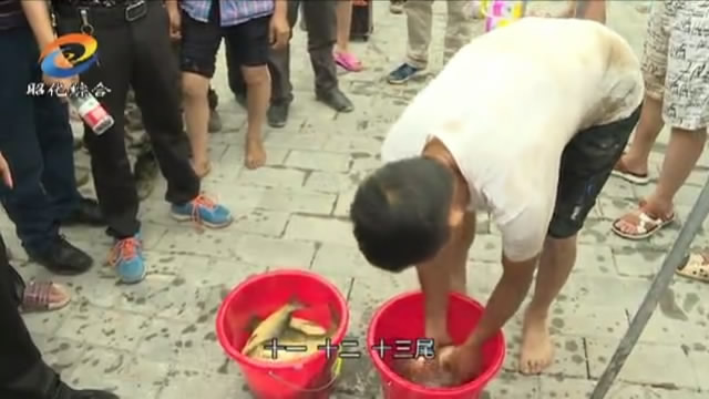 在磨滩镇百胜村,由当地村民自发组织开展的徒手捉鱼比赛正激烈进行。随着裁判一声令下,早已摩拳擦掌、跃跃欲试的村民们纷纷跃入稻田,伸出双手开始摸起来,顿时搅得稻田里一片沸腾,此起彼伏的欢叫声回荡在稻田里。经过一个小时的激烈角逐,最终,百胜村代表队获得本次比赛的冠军。