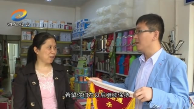 一大早,卫子镇纪委书记刘加林便与卫子社区的工作人员一起为获得环境治理示范户的场镇商户授予了流动红旗。