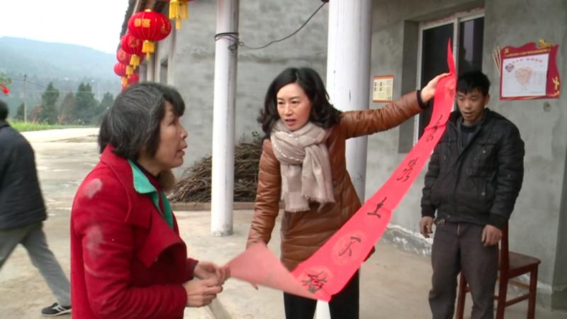 年关将至,贫困户过节物资准备的如何,是否还存在生活困难?带着关心和疑问,贾小玲一行深入丁家乡双龙村、青龙村,看望慰问贫困群众,为贫困群众送上驻村工作人员手写的春联,并与贫困群众一起贴春联、挂灯笼,营造节日氛围。