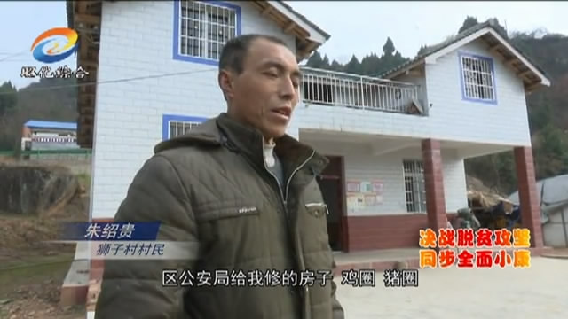 脱贫攻坚打响后,狮子村紧紧围绕“过上好日子、住上好房子、养成好习惯、形成好风气”的总体要求推进脱贫工作。今年52岁的朱绍贵是区公安局联系帮扶的贫困户,家里一共四口人,由于全家人都患有脑智功能不全、身体残疾等障碍,生产生活都有很大的困难,在帮扶部门和村两委的帮助下,朱绍贵一家建好了房子,修好了院子,自己还搞起了养殖,如今,朱绍贵一家已经顺利脱贫。