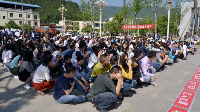 今天是全国第九个防灾减灾日,为提高大家应对突发事件的防范意识,我区开展了地震应急疏散演练。