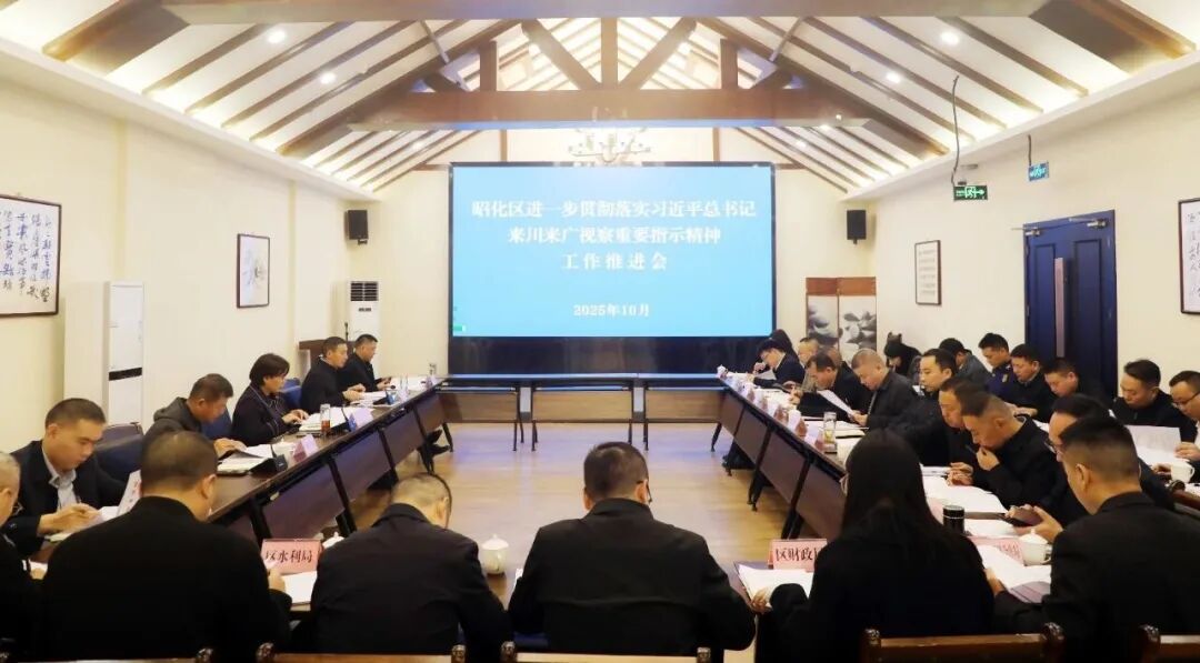 10月23日,昭化区进一步贯彻落实习近平总书记来川来广视察重要指示精神工作推进会召开。区委书记王静主持会议并讲话。她强调,要把学习贯彻习近平总书记来川来广视察重要指示精神和对天雄村群众的亲切关怀转化为昭化发展强劲动能,以钉钉子精神推动各项任务落地见效、开花结果。区委副书记、区长辛俊出席会议。