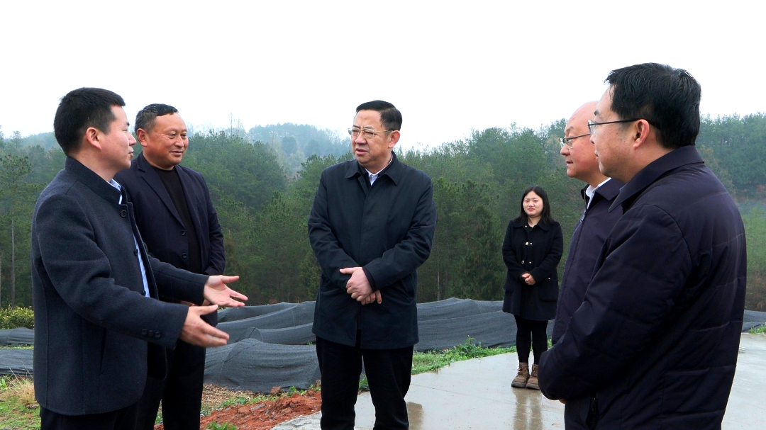 金堂村作为磨滩镇东南门户,生态条件优越,当地立足资源禀赋,发展以“黄茶为主、油茶为辅”的特色集体经济,走出了一条产业兴村的新路子。来到这里,杨浩详细询问农村“三资”管理、产业规模及群众增收情况,对当地成效给予肯定。他强调,要聚焦村集体经济提质增效,适度扩大种植规模,抓实田间管护,延伸产业链、完善配套设施,做优做强特色产业,带动群众稳定增收。