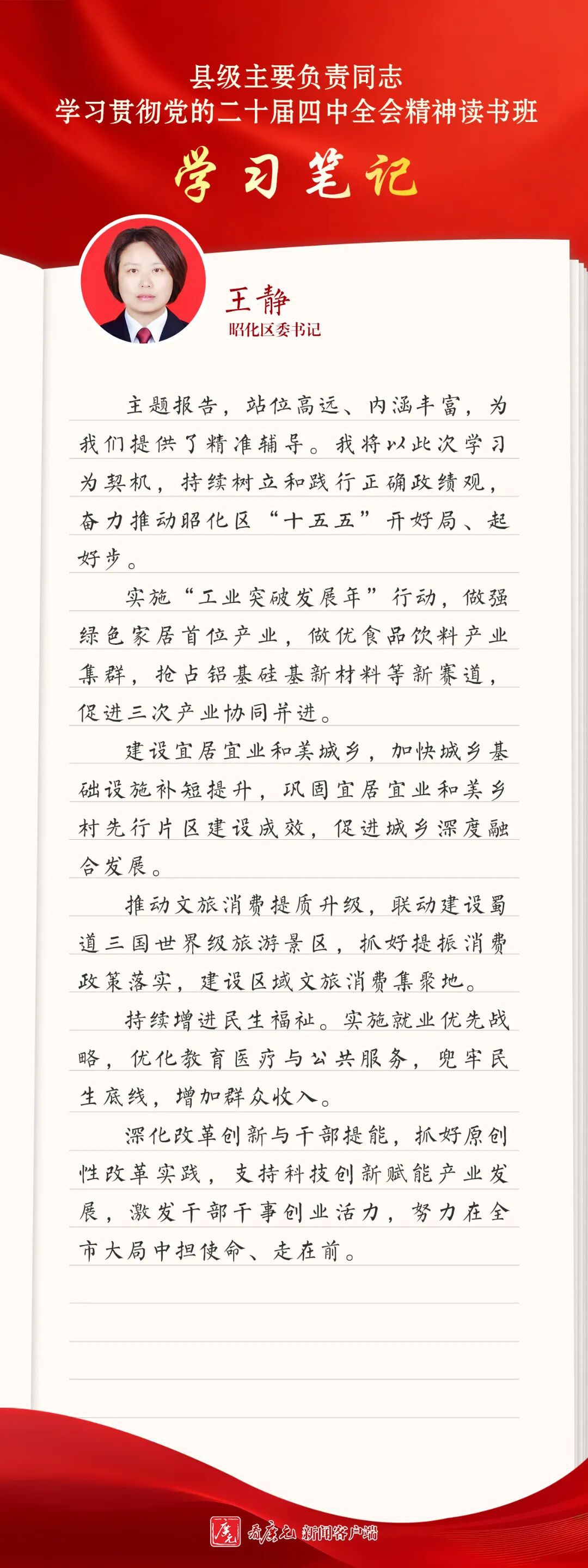 读书班学习笔记|昭化区委书记王静:深学细悟强本领 担当实干谱新篇