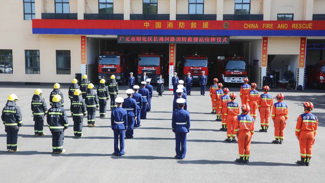 仪式在庄严的国歌声中拉开序幕,消防救援人员整齐列队,迎接中国消防救援队队旗,宣读了《关于广元市昭化区长滩河路消防救援站投勤的通知》,长滩河路消防救援站指战员代表作了表态发言。