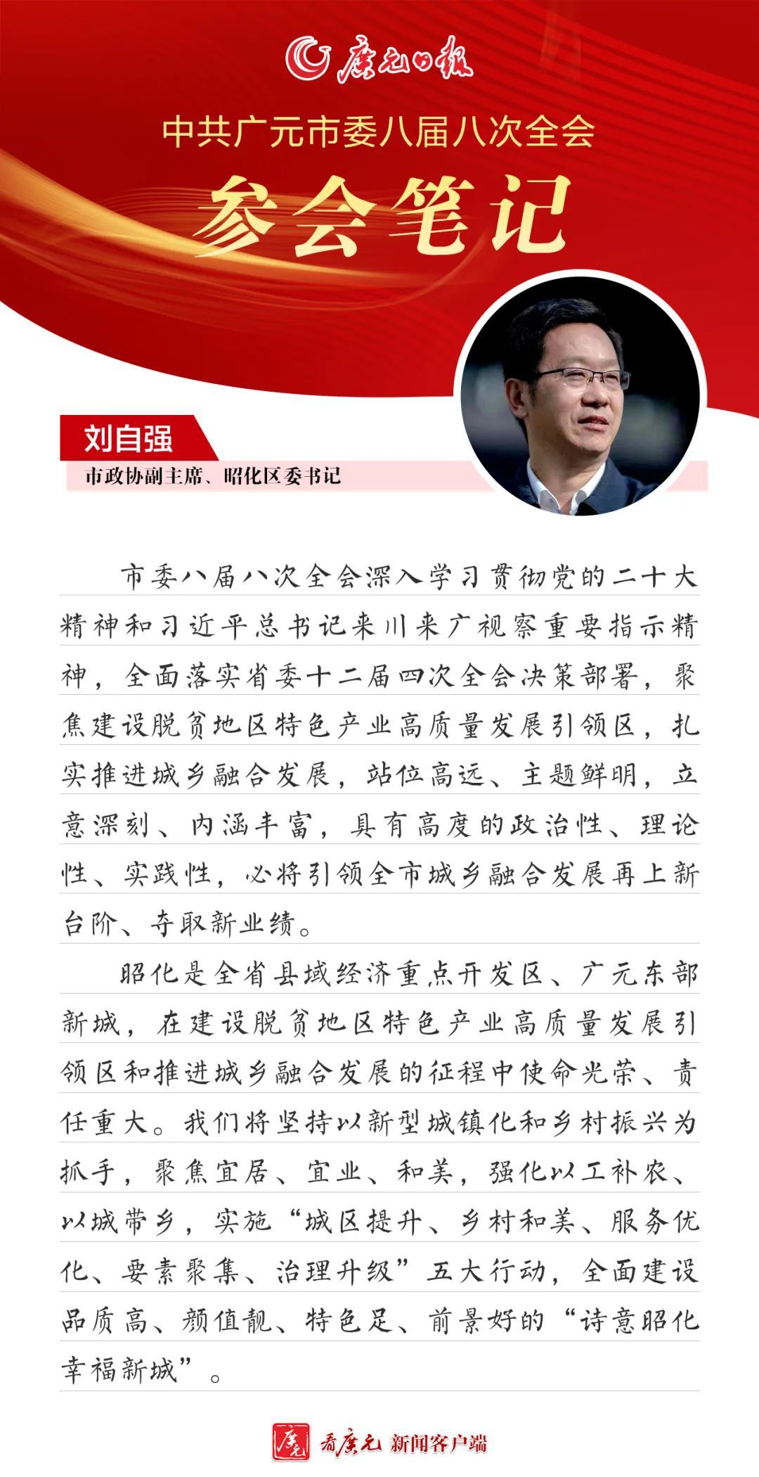 参会笔记丨市政协副主席、昭化区委书记刘自强:实施“五大行动”,全面建设“诗意昭化幸福新城”