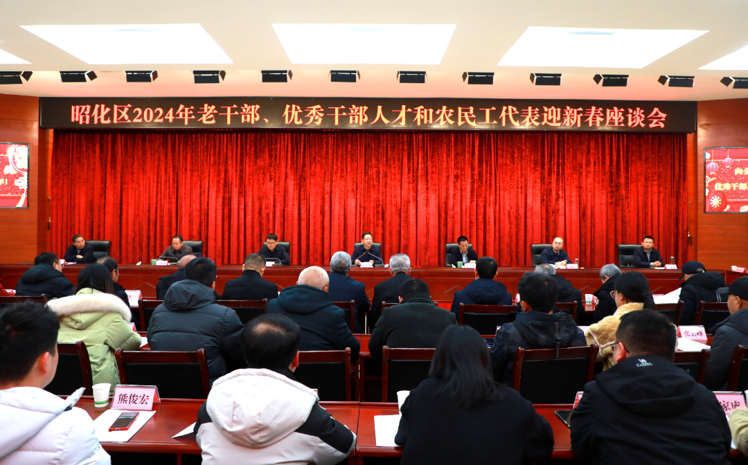 1月30日,昭化区2024年老干部、优秀干部人才和农民工代表迎新春座谈会举行,区委书记刘自强、区政协主席朱永国、区委副书记张玉全、屈琳杰同离退休老干部、优秀干部人才和农民工代表欢聚一堂,同迎佳节、回顾荣光、展望未来。