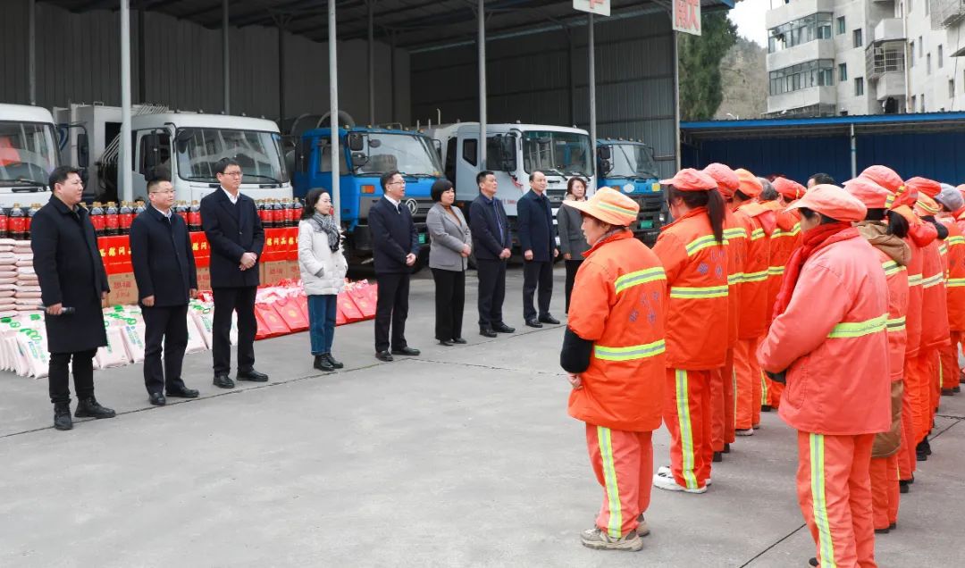 晨昏身影染流光,傲雪凌风笑对霜。走进区环境卫生管理所,刘自强一行看望慰问了可爱可敬的城市“美容师”们,他说,全区广大环卫工人起早贪黑,无论严寒酷暑都默默无闻、辛勤付出,在平凡的岗位创造出不平凡的功绩,区委、区政府和全区广大人民群众向你们的无私奉献表示感谢!祝愿你们新年快乐、身体健康、阖家幸福!希望大家继续用美丽的心灵和勤劳的双手,把我们的城市装扮得更加整洁、靓丽,让人民群众的生活越来越美好!