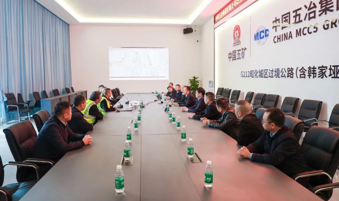 在中国五冶集团有限公司G212昭化城区过境公路(含韩家垭隧道)项目经理部,刘自强观看项目预期成效演示,与集团有关负责同志座谈交流,感谢集团一直以来对昭化区经济社会发展的支持与贡献。