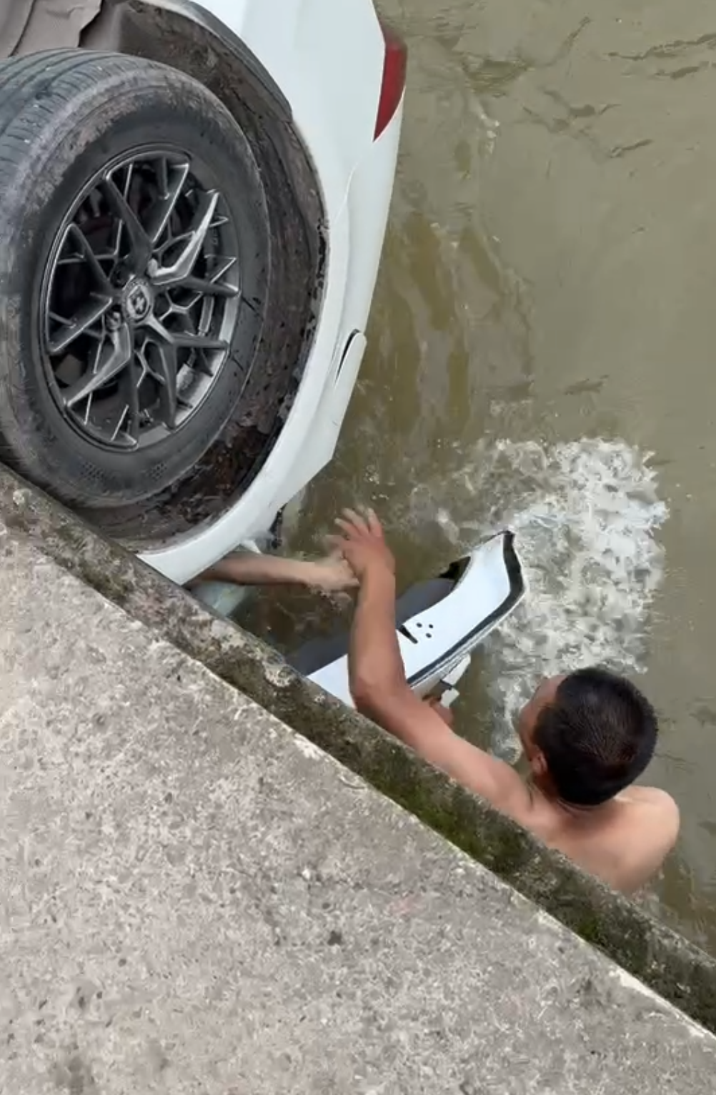 “前车门被水压卡死,我们尝试拉开前车门,但根本打不开!”张望回忆,由于车辆卡在桥洞下方,施救空间狭窄,河水很急,幸好拉开了后面的车门,帮助司机从后门逃离,“被困司机看起来40岁左右,从车中出来后他意识清醒,但站得不是很稳。”陈建补充道。