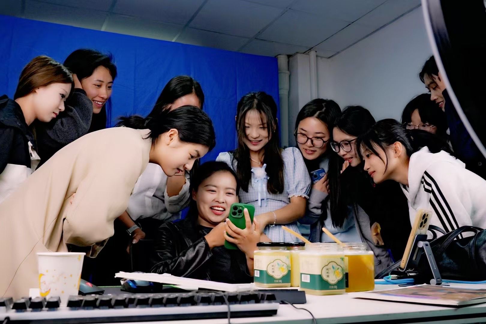 何桂枝带着大学生们一起直播卖蜂蜜