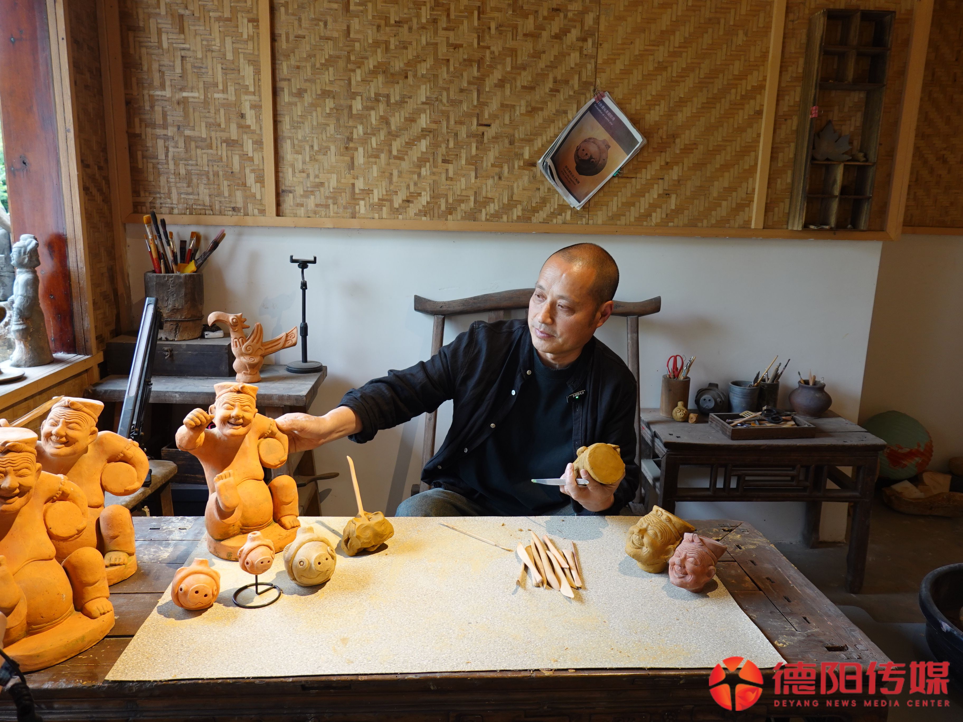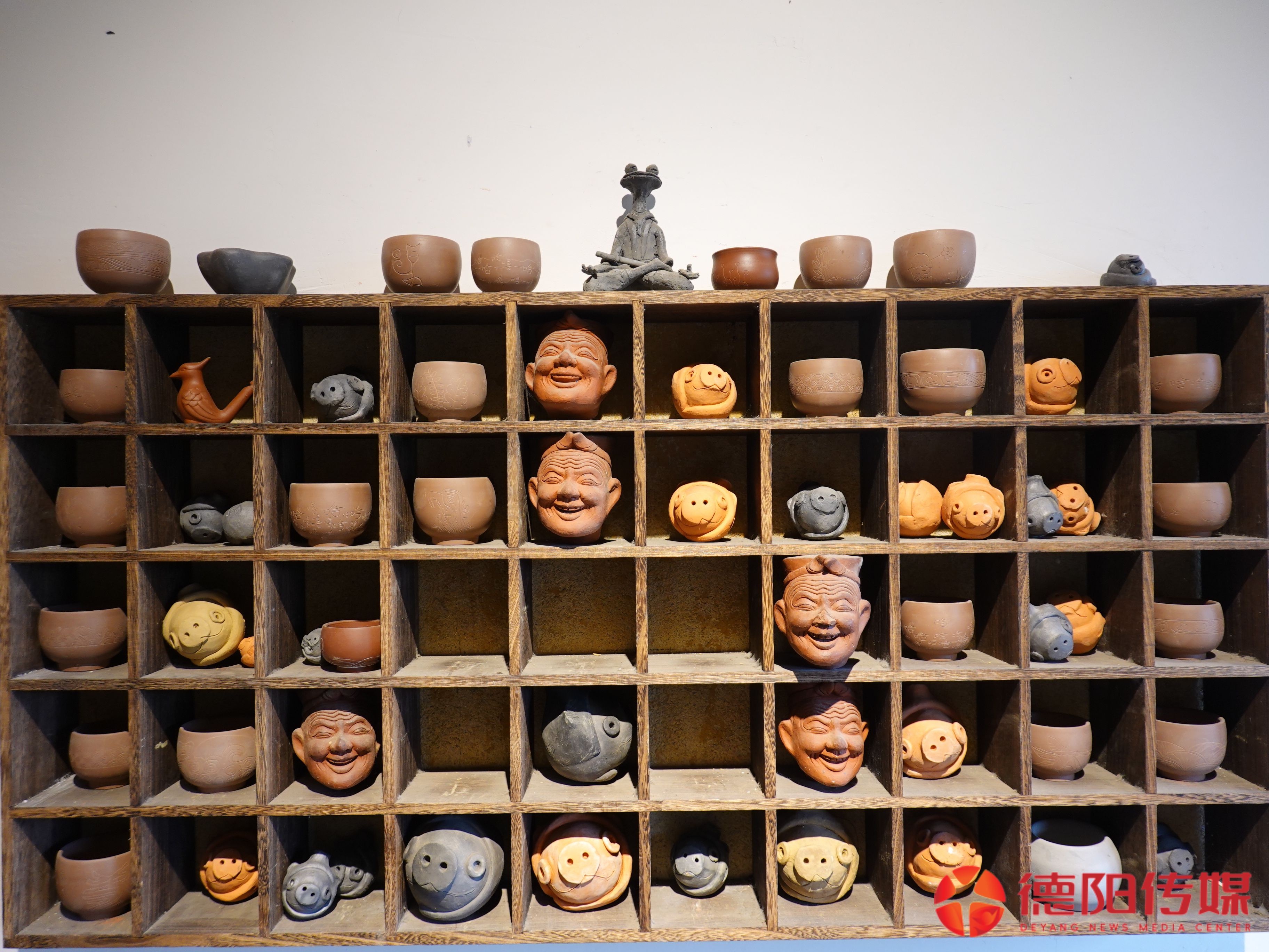 30多年来,王万富通过手中的泥巴将汉代陶俑尤其是“说唱俑”和三星堆文物复原出来,并加以创新,形成了独具特色的陶艺艺术品,在当地被称作“汉州陶艺王”,在圈内的名气也越来越大。“和不少博物馆合作过,为他们制作一些文物复刻品或创新的文创作品。”王万富说。