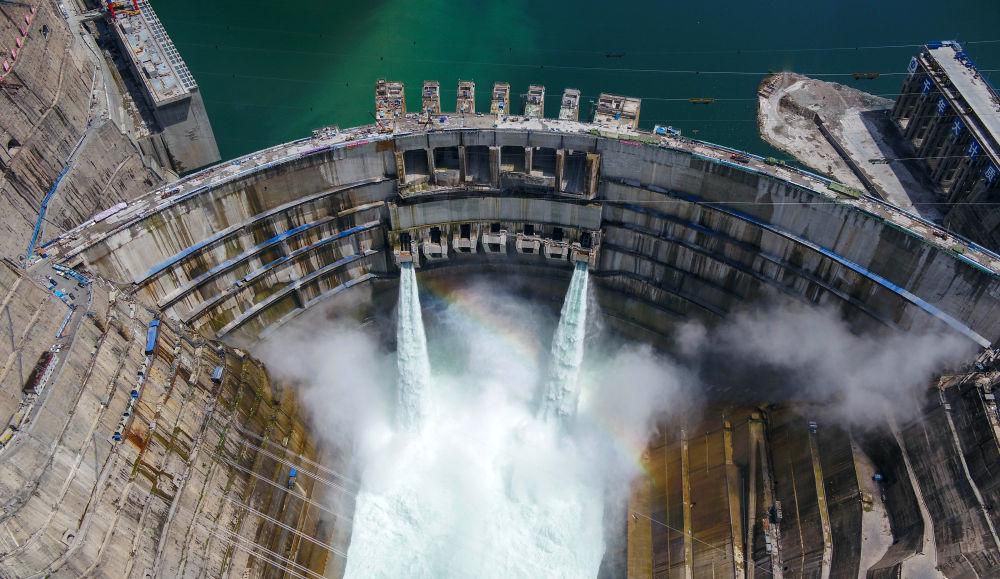 这是金沙江下游白鹤滩水电站(2021年6月10日摄,无人机照片)。新华社记者 胥冰洁 摄