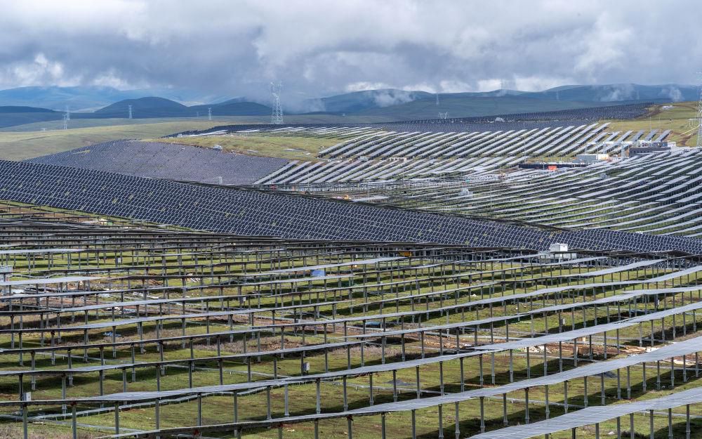 这是2024年10月9日在四川甘孜藏族自治州拍摄的180万千瓦昂多光伏项目建设现场。新华社发(姚航 摄)