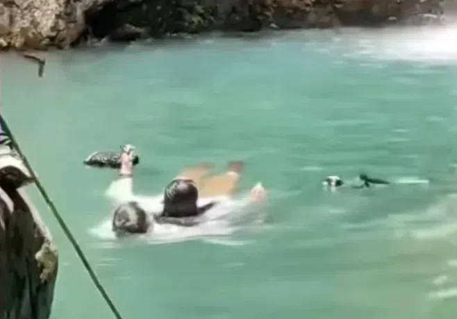 郑志军跳入深潭中救人 图据浙江金华市金东区委宣传部