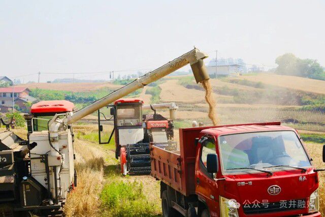 夕阳西下,收割机仍在田间忙碌,金黄的麦粒装满了一车又一车。这片希望的田野上,农机的轰鸣声、村民的欢笑声、游客的赞叹声交织在一起,奏响了一曲乡村振兴的新乐章。