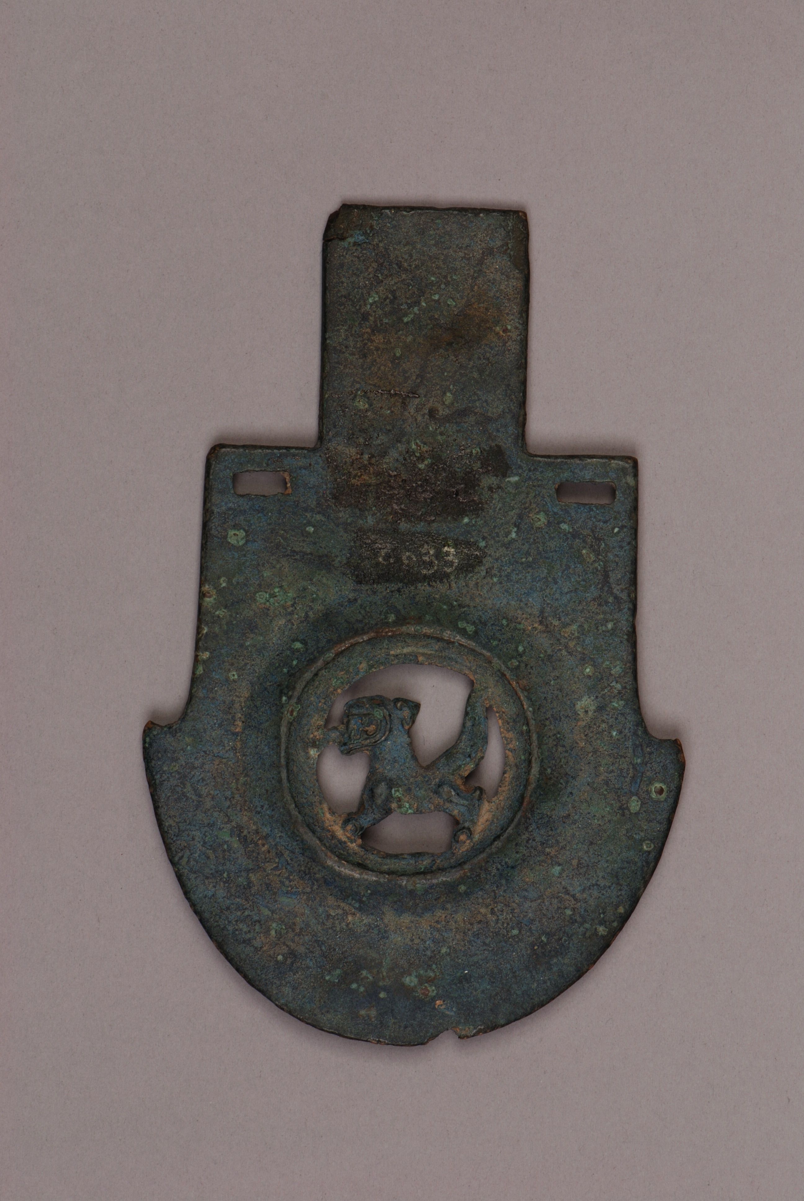 “这件‘周虎纹斧形铜钺’是国家一级文物,出土于阆中市彭城坝。钺上所饰虎纹昂首翘尾,张口吐舌,形态生动,别具匠心。虎的两足、尾巴、舌头四点与钺身衔接,将镂空艺术与力学原理巧妙结合在一起,极为罕见。”该博物馆相关负责人告诉记者,钺,原是古代兵器的一种,重量比斧类兵器还大,其图案具有春秋战国晚期的虎纹特征。在后来历史的发展演变中,钺逐渐失去作战武器性质,而变为仪仗礼器。