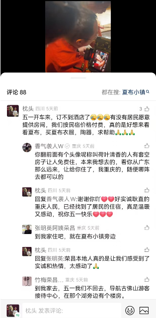 “当时都打算在荣昌周边找地方住了。”在去荣昌的路上,刘美君一直刷着“荣昌江哥”的视频,她尝试在视频底下留言:“来荣昌玩订不到酒店了,有没有居民愿意提供房间,可以按民宿价格付费。”
