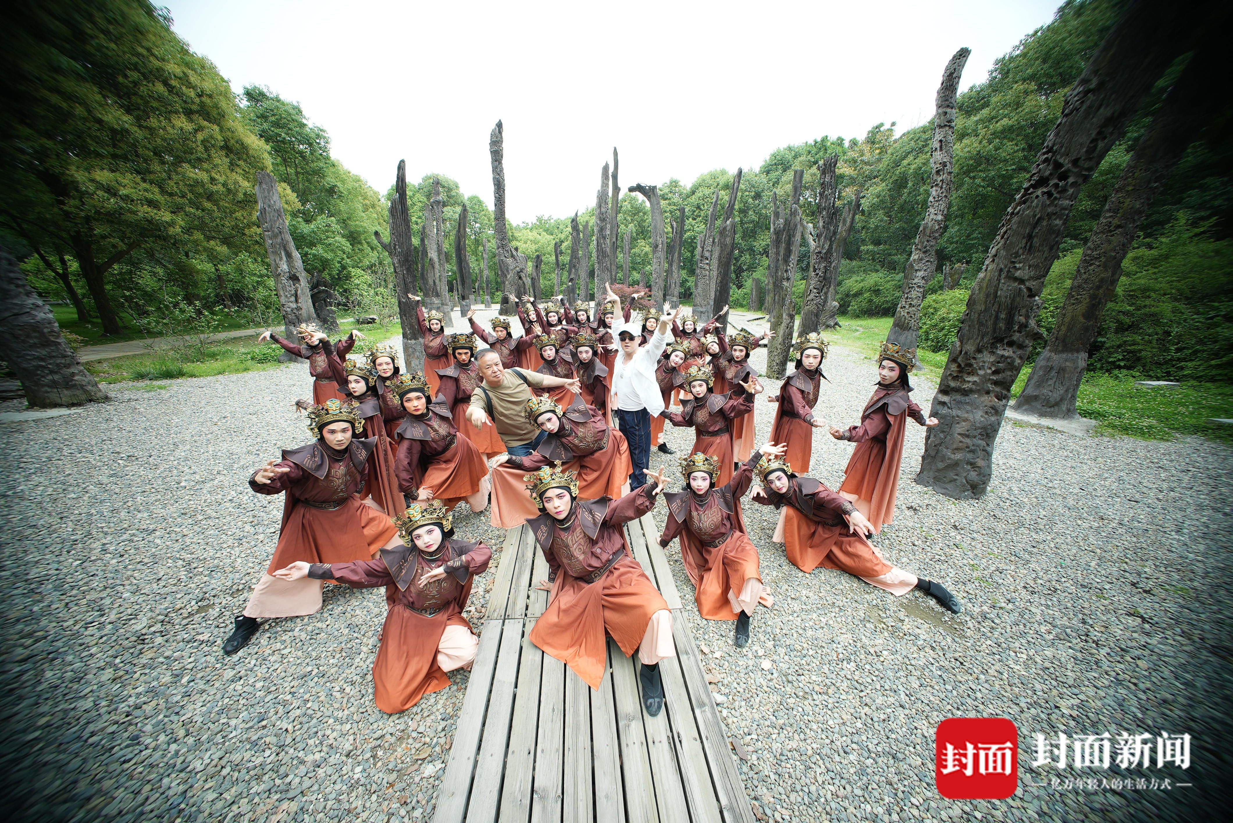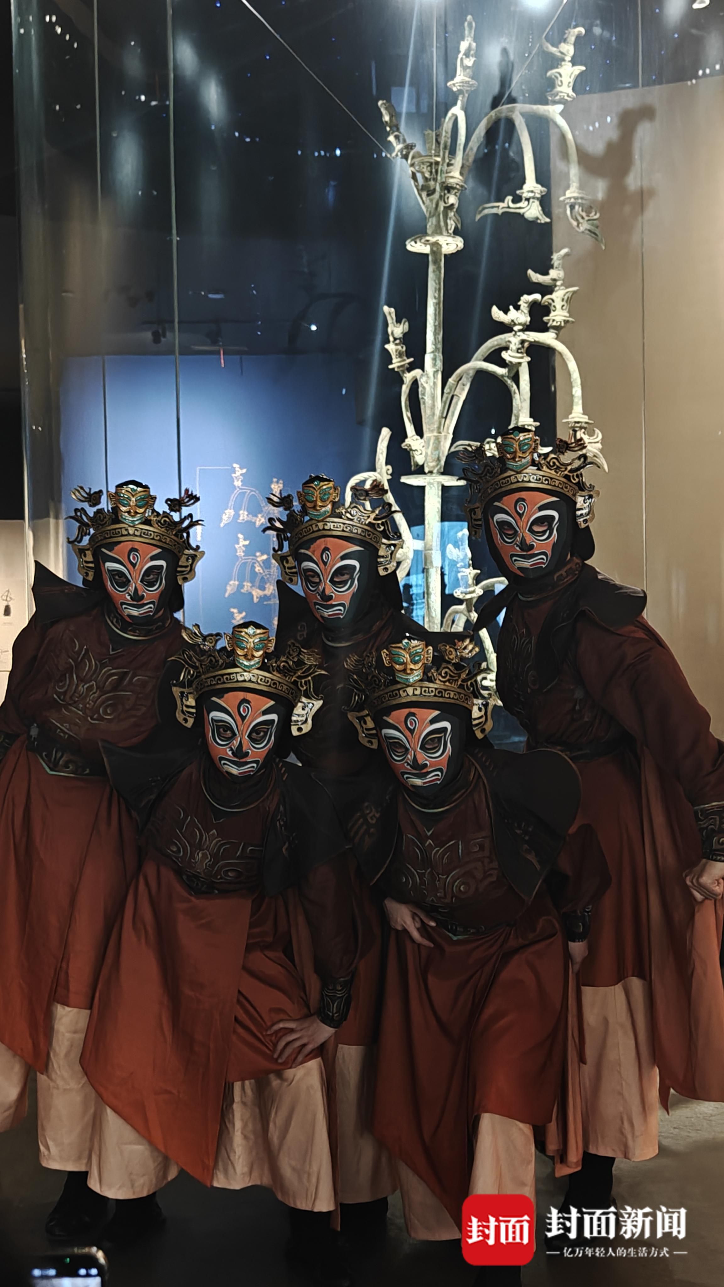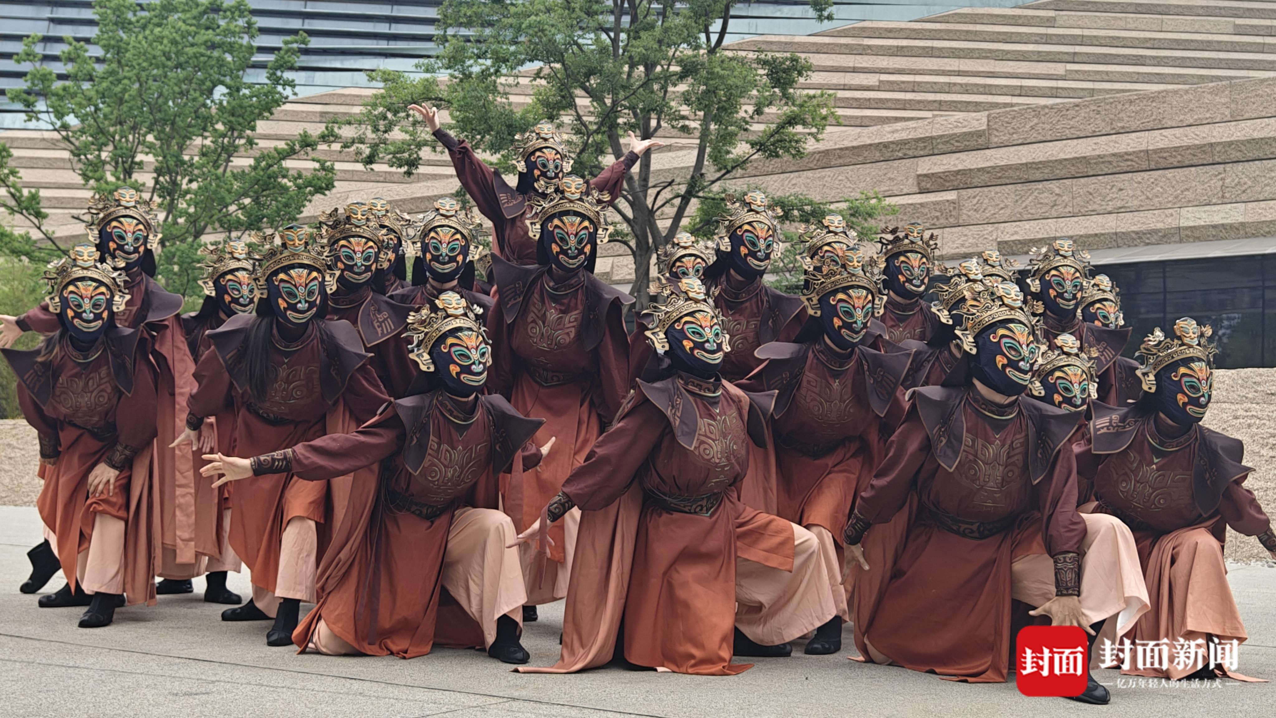不久前,封面新闻还携手《古蜀天边行》主创团队走进金沙遗址博物馆,并推出《这支街舞让金面具变脸》特别报道。无独有偶,首演前一天(17日),封面新闻记者再次与《古蜀天边行》主创团队一起走进三星堆博物馆,当千年古蜀文明邂逅现代艺术魅力,当传统戏曲跨界时尚街舞,一场跨越千年的文明对话,就此展开。