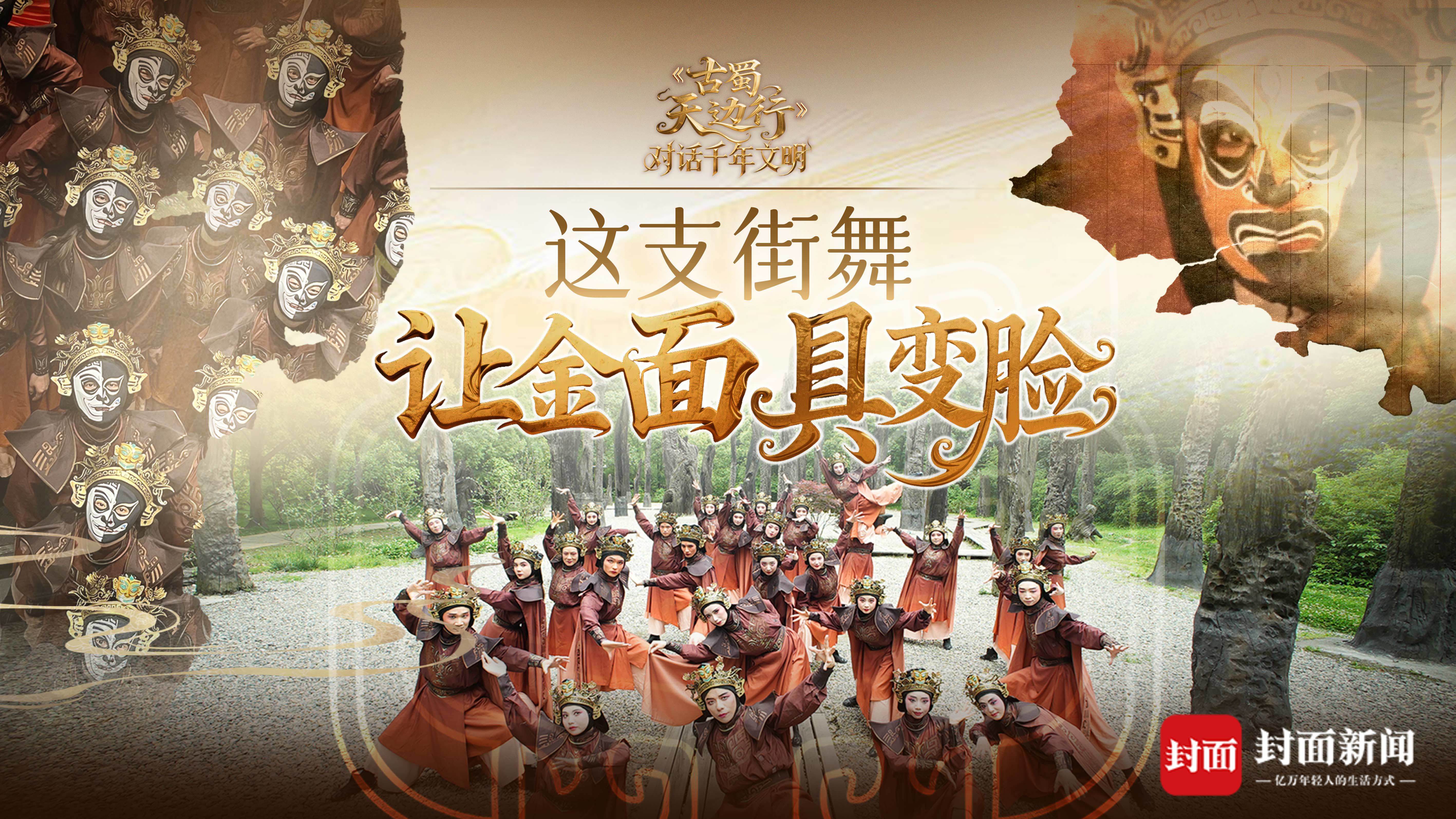 《古蜀天边行》时长5分42秒,Hiphop Jazz Waacking Poppin等多种风格的街舞与川剧变脸、花旦、碎步、云手等程式表演相结合,在力量感与传统韵味的融合中展开刚柔并济的肢体叙事。街舞编导阙瑞在接受封面新闻记者采访时坦言:“川剧每一幕戏都致力于描绘鲜活的人物形象,而街舞同样注重凸显舞者个人的独特色彩,这一共同点成为编舞的重要切入点。”