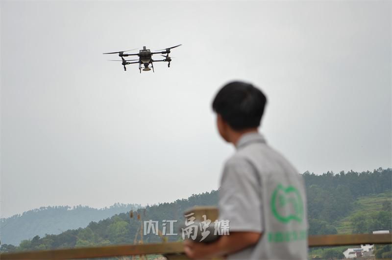 不远处,一名小伙子一边手指灵动地操控遥控器,一边频繁抬头……他便是活跃在三合村和普陀村的00后“农业飞手”晏吕强。