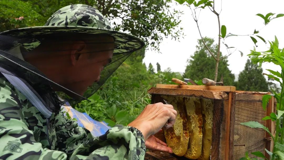 正在割蜜的沈树林说