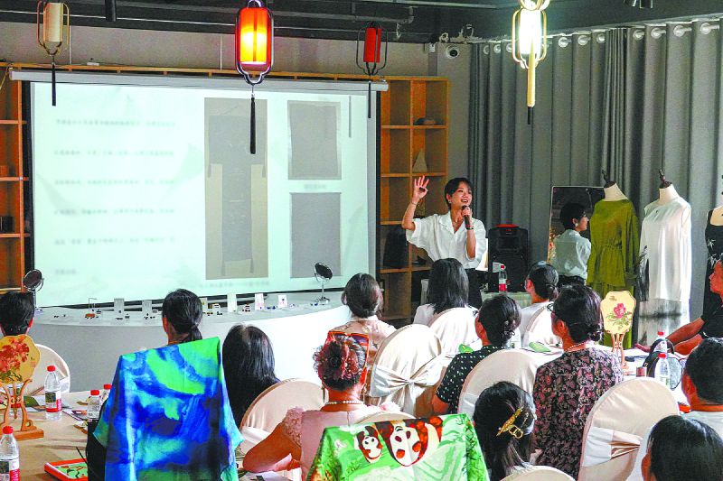 活动中,蜀绘技艺传承人、南充市工艺美术大师余鑫欣以“永不褪色的东方美”为主题,从蜀绘历史、蜀绘工艺、蜀绘产品演变三个方面,为大家深入浅出地讲解了蜀绘的故事。随后,蜀绘技艺传承人、资深媒体人李羽娴登台。她围绕“穿搭美学与时尚日常”展开分享,并以大量案例,向嘉宾讲解如何将蜀绘元素巧妙融入现代时尚穿搭。