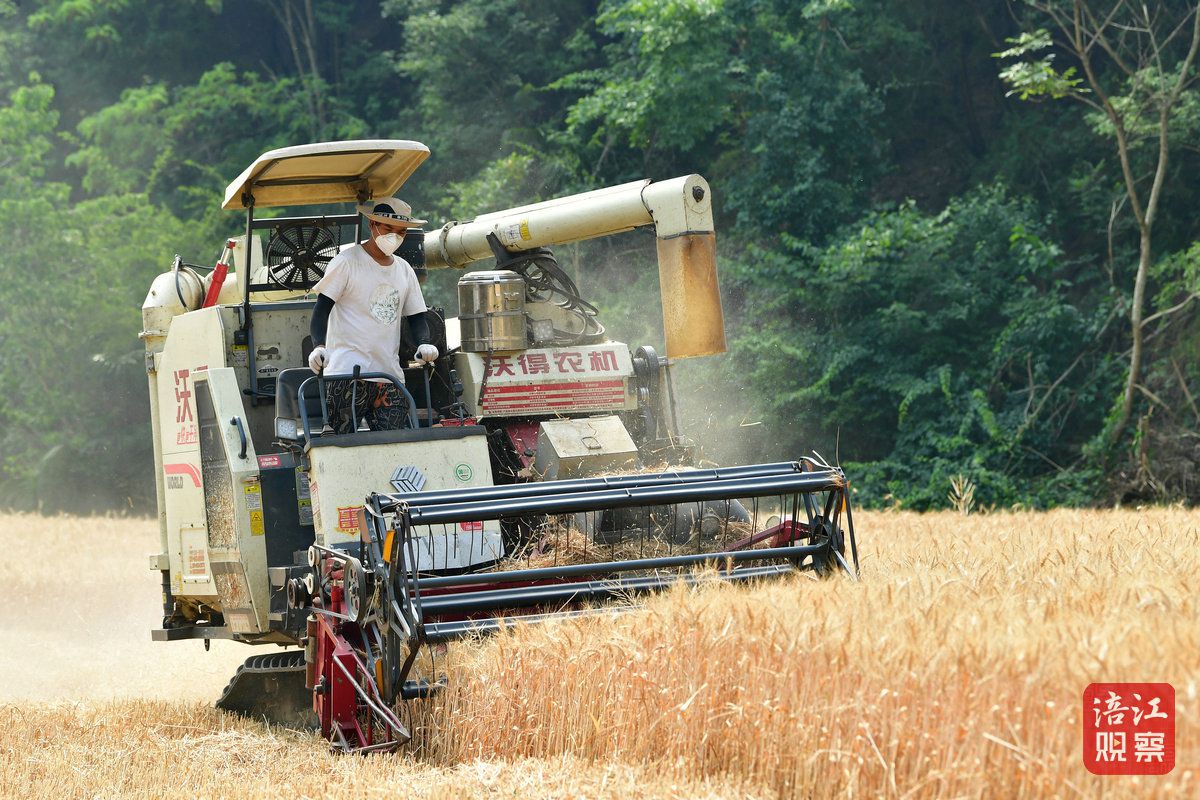 5月19日,当布谷鸟的鸣唱划破绵阳市三台县中太镇猫儿沟村万天宫山梁的静谧,翻腾的金色麦浪在晨风中簌簌作响,空气中弥漫着麦穗特有的甜香。