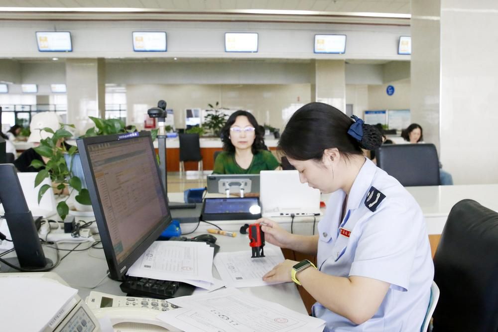 在涉税业务“一站式”窗口,工作人员正在为个体工商户进行业务办理。 李东东 摄