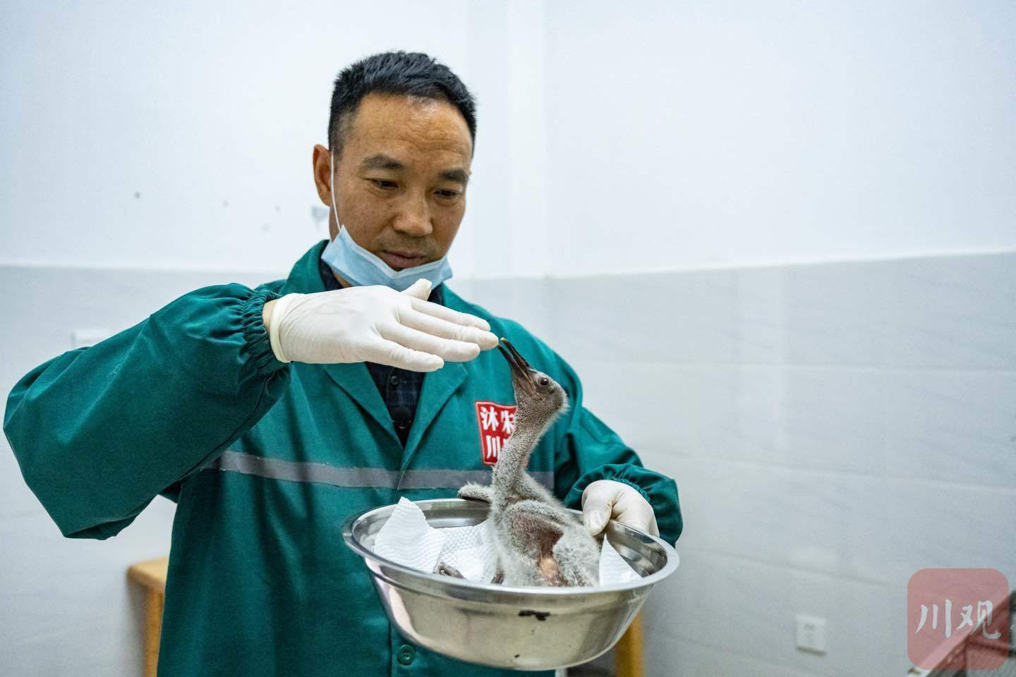 繁育中心工作人员育雏。