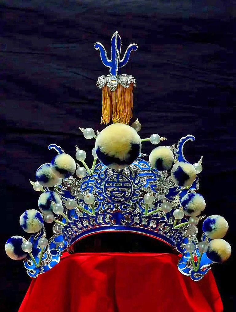 “这顶耳蒲文就是一个四件套,不同的人物要配不同的饰品,如果配上白鹤,就是程咬金的专属盔头。”冯侨介绍,川剧盔头是川剧服饰的重中之重,承载着丰富的戏曲文化内涵,帅盔红缨三杈戟镇三军,太子盔银珠绒球显贵胄……盔头是观众认识剧目人物的关键“窗口”,为川剧增添了绚烂的色彩。