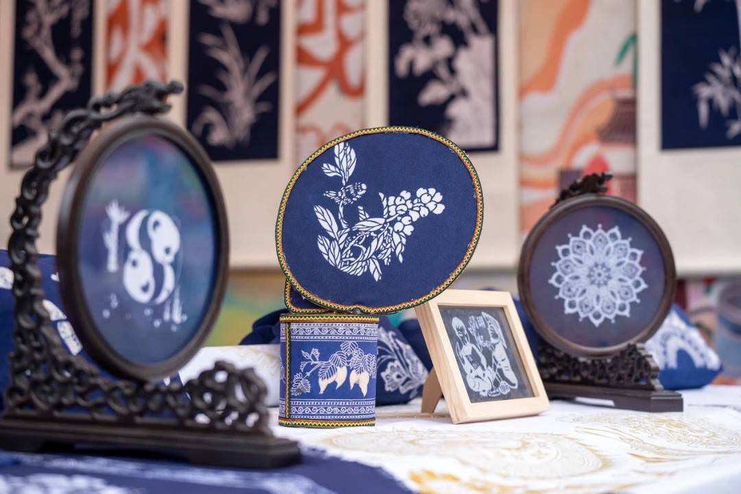 苗族蜡染展位则呈现传统技艺的时尚蜕变。传承人将百鸟衣纹样转化为发夹、手包等潮品,既保留“蜡刀绘花”的古法,又契合现代审美。“这些纹样是我们民族的密码”,一位蜡染艺人抚摸着裙摆上的蝴蝶纹说道。现场成交的定制订单,印证了非遗市场化转化的成功。