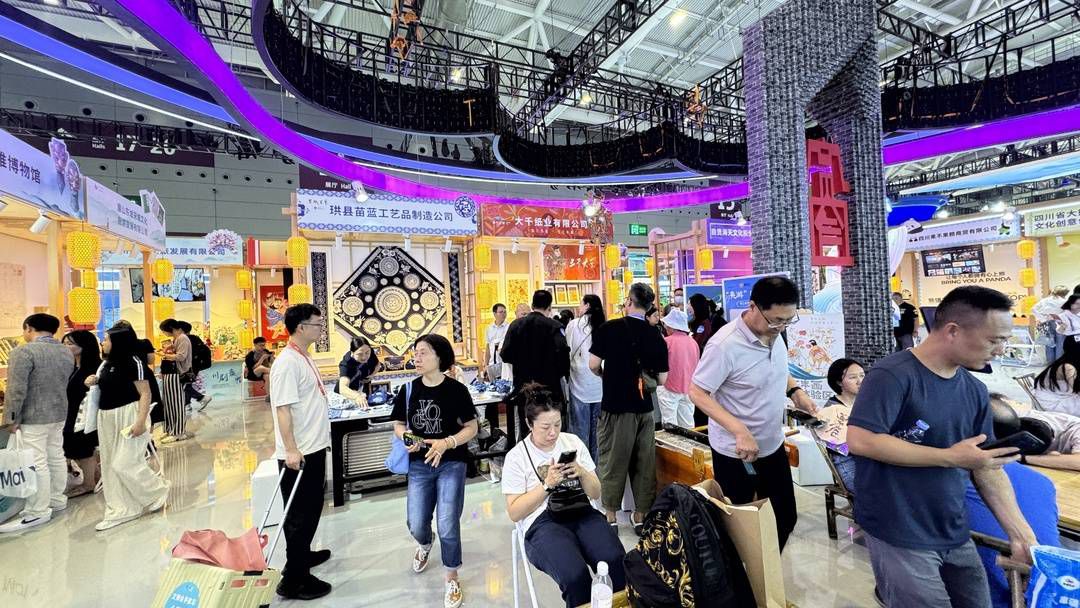 5月23日,第二十一届中国(深圳)国际文化产业博览交易会吸引着来自全球各地的观览者,四川展馆的“非遗体验”成为热点,通过三星堆文创、德阳潮扇、绵竹年画等特色展演,打造了一场传统与现代交融的文化盛宴。从青铜玩偶到蜡染服饰,从古法造纸到川剧盔帽,四川非遗正以创新姿态走进现代生活,让观众在互动体验中感受巴蜀文化的独特魅力。