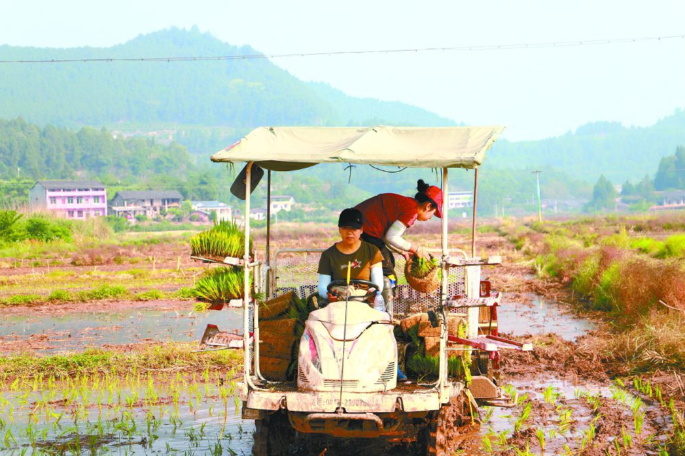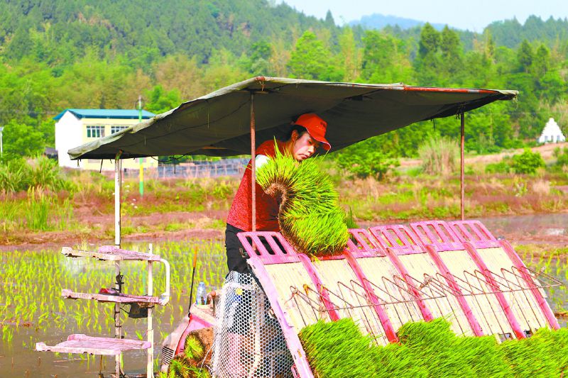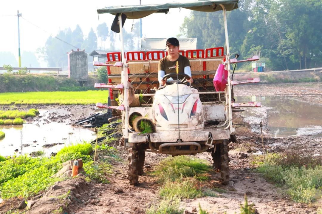 清晨,南充市西充县太平镇印台山村的田垄间已响起农机的轰鸣声。林蓉一家带领公司农机手驾驶插秧机在晨雾中划出笔直的绿线。“机器主导,人工辅助,一天能插秧100多亩!”“女农机手”林蓉抹了把汗,话语间充满丰收的信心。