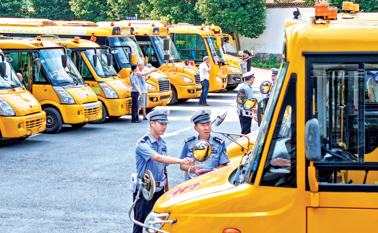 点火看校车能否运行、跟车老师核对学生请假情况、查看路线图……四名轮值的“安全员”分工协作。7点刚过,司机启动校车,按照提前规划好的线路开始接人。
