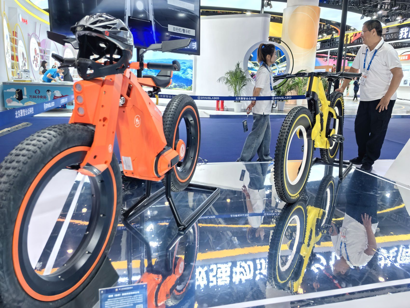 北京聚智合众科技有限公司展出无辐式自行车。“空心轮毂的结构设计,打破了传统中轴结构。”公司总裁方刚说,创新设计让整车物理重心降低,显著提高骑行稳定性,“就算高速过弯也能平稳顺畅。”