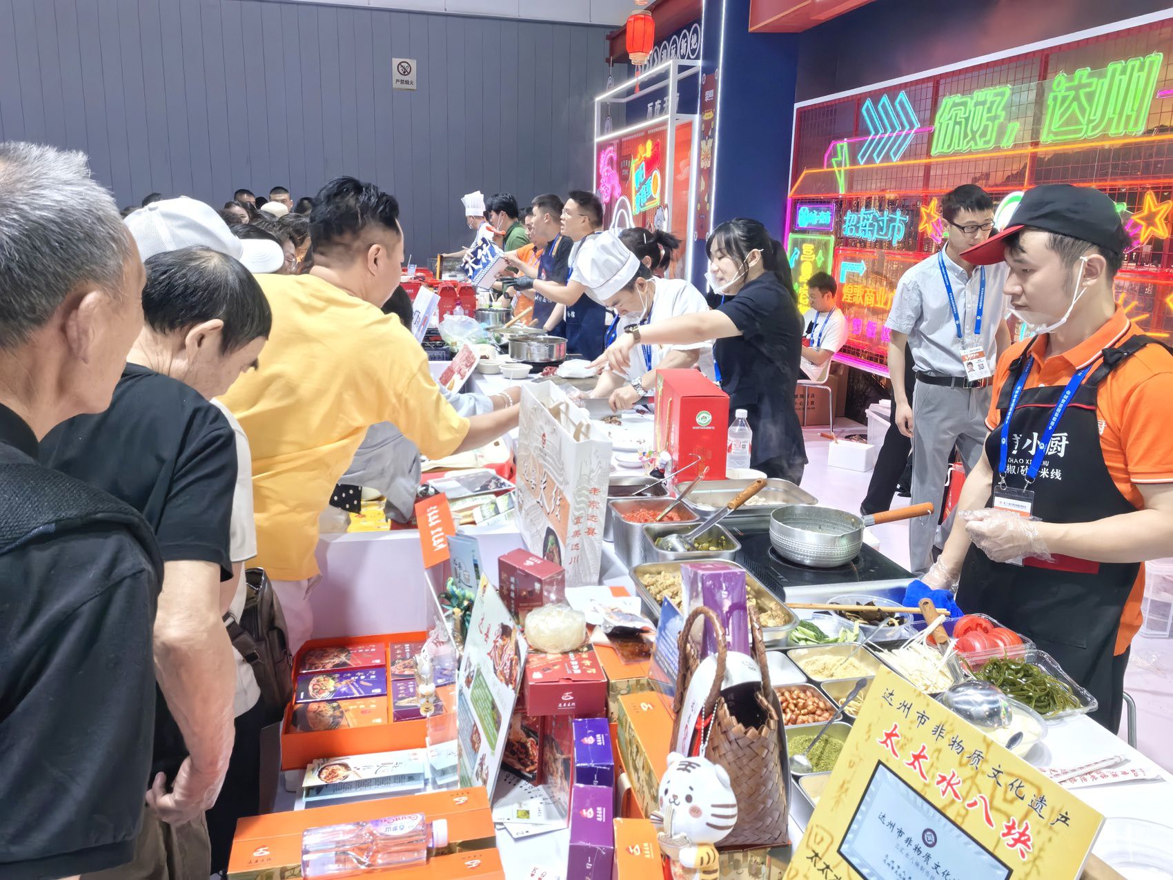 “幸福之州”展区一二十米长的展位,展出琳琅满目的特色小吃,现场烹制现场品尝,成为达州馆人气最旺的区域。