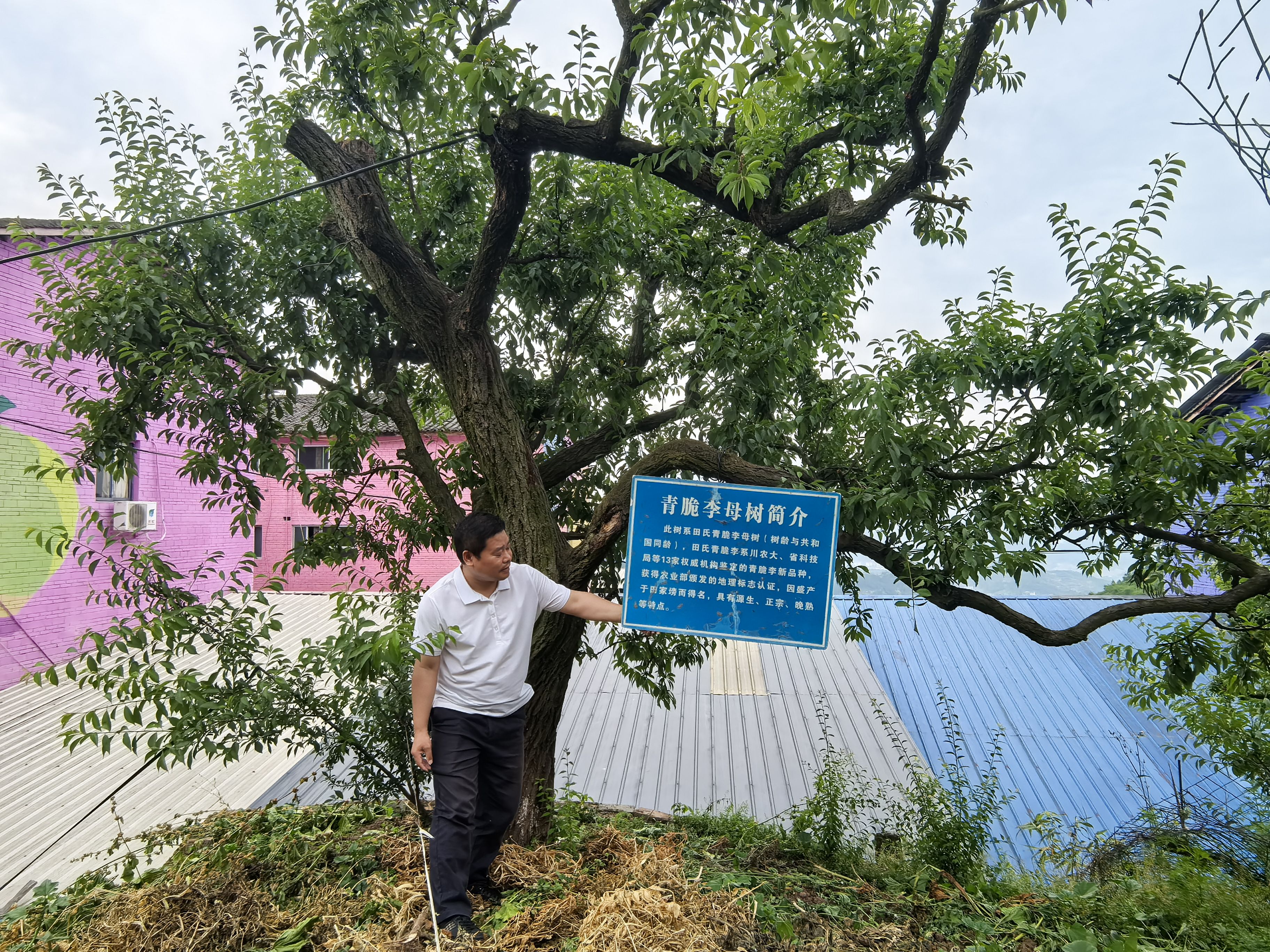 记者一行到访时,70多岁的张光碧老人快步从堂屋拿出一块蓝色牌子,生怕自家母树的“身份”被质疑。她用袖口蹭了蹭牌子表面的灰,试图将其重新挂回树上,奈何身高差了一截。张小江将牌子挂上,她又踮着脚去扳正,直到上面的字能直直对着镜头:青脆李母树简介——此树系田氏青脆李母树,树龄与共和国同龄……