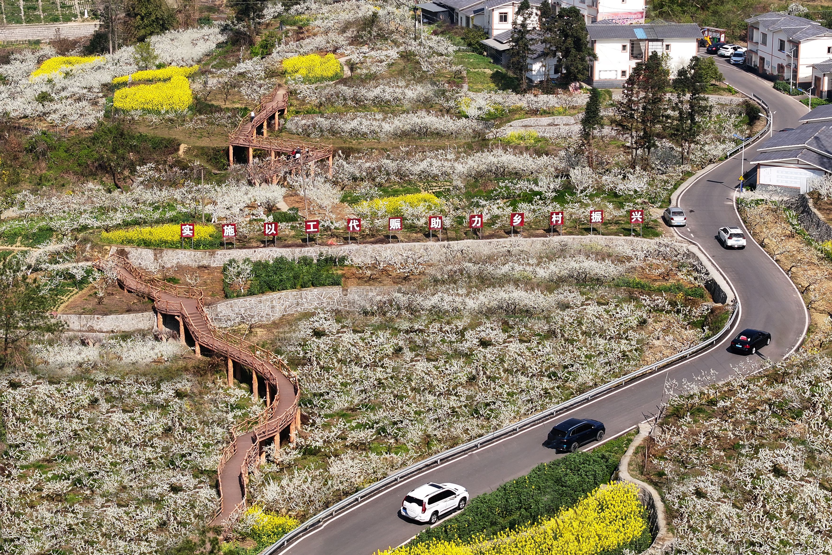 今年3月,李花再次漫山如雪。拓宽至5.5米的水泥路蜿蜒如龙,载着游客的车畅行无阻。汉服巡游的“花神”款步花间,广袖拂落瓣瓣芬芳;花海音乐会中,古筝的清越与摇滚的热烈撞个满怀。夜幕下,百桌火锅宴支起,牛油香混着李花香,漫过平整的路面。火舌舔着锅底,映着居民们通红的脸,他们曾在迁坟时洒泪,在砍树时心疼,此刻却望着热闹的场景,眼里有光。这场热闹,是土地的馈赠,更是人心的奔赴。李花开在枝头,也开在乡村振兴的脉络里,让古老山村抖落尘埃,以一条路的蜕变,迎接八方来客,让沉睡的乡土活力,在烟火与花香中重新苏醒。