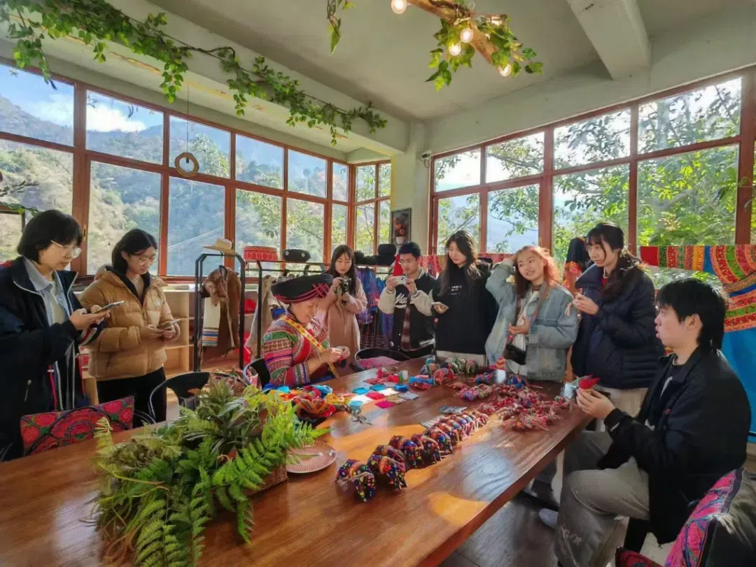 与此同时,“非遗+高校”也在盐边落地开花。四川大学、西南民族大学、四川音乐学院等院校纷纷在此设立实践基地,开展文创孵化、文化传播、研学调研等多项深度合作项目。来自高校的青年设计师与村寨的手艺人并肩协作,形成“共创生态”。