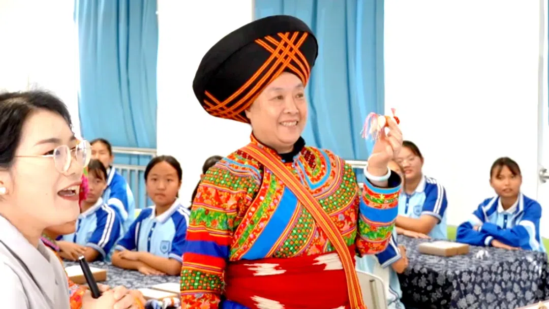 2024年11月,该校与北京第二实验小学朝阳学校、北京市朝阳区教育科学研究院附属小学分校同步进行“见面猴”直播互动课堂。贺正芬当时就在盐边课堂上,对着镜头,用傈僳语和北京的孩子打招呼,教他们“您好”的发音,带领他们动手制作这件象征“见猴如面,永保平安”的手工艺品。