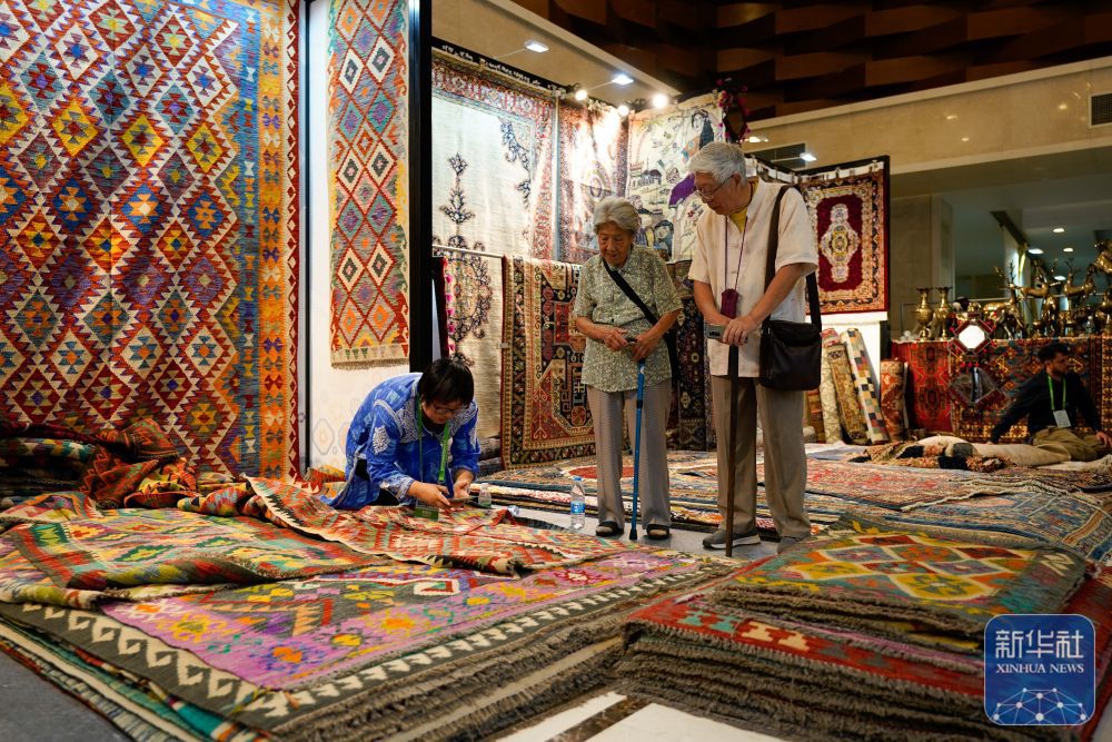 5月28日,在成都国际非遗节“魅力非遗·国际大展”现场,参观者在了解阿富汗地毯。