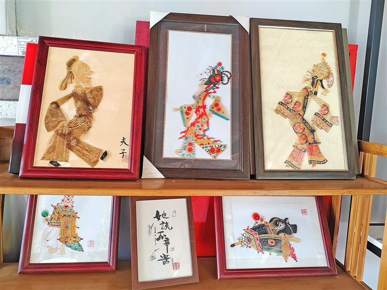 走进这个近百平方米的皮影工作室,目之所及的便是各种皮影制成的物件,有传统皮影戏的道具,有皮影首饰、皮影摆件、文房用具等现代文创皮影产品。