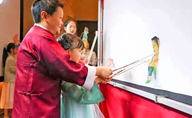 敬新春带领小朋友们体验皮影戏。