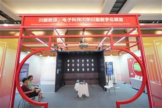 川剧新语·电子科技大学数字化展区为传统文化带来了全新的体验。一名体验者在屏幕前用手划过脸部,不同的数字化脸谱依次呈现,她通过屏幕完成了一场川剧变脸表演。