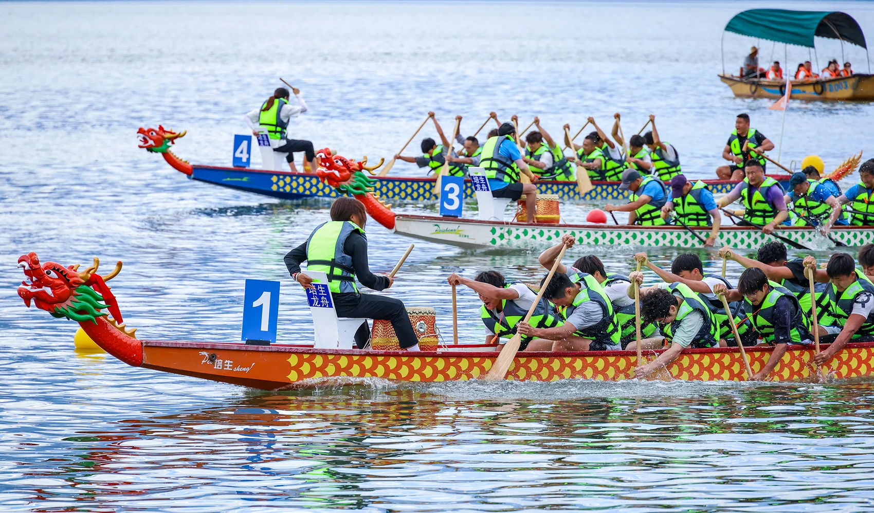 5月31日端午节,2025“体育之光”非遗体育文化季重头戏——“龙跃邛池·舟骋嶲州”全民健身暨西昌邛海龙舟节在西昌市月色风情小镇开幕,此次比赛吸引了来自省内外及本地的18支队伍齐聚邛海。西昌融媒供图