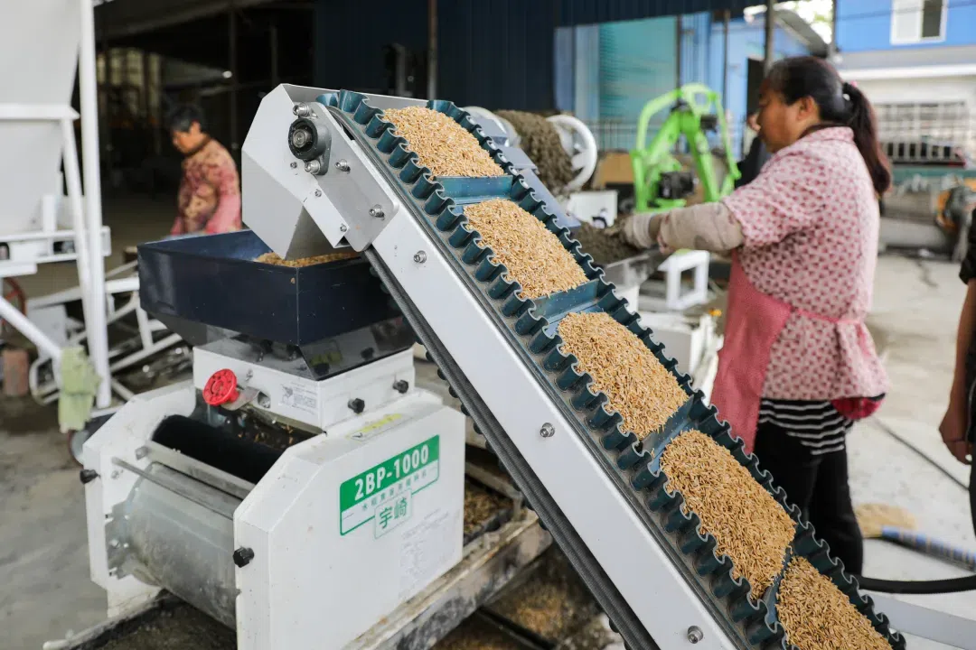 在PK掉很多“高手”后,我暂时离开了永丰村。种粮户们把我带到了东坡区复兴镇,这里是东坡区水稻制种产业的核心地。我看到了能同时烘干250吨稻种的种子烘干加工仓储中心,种子的清选、烘干、加工、仓储全部采用流水线自动化作业。