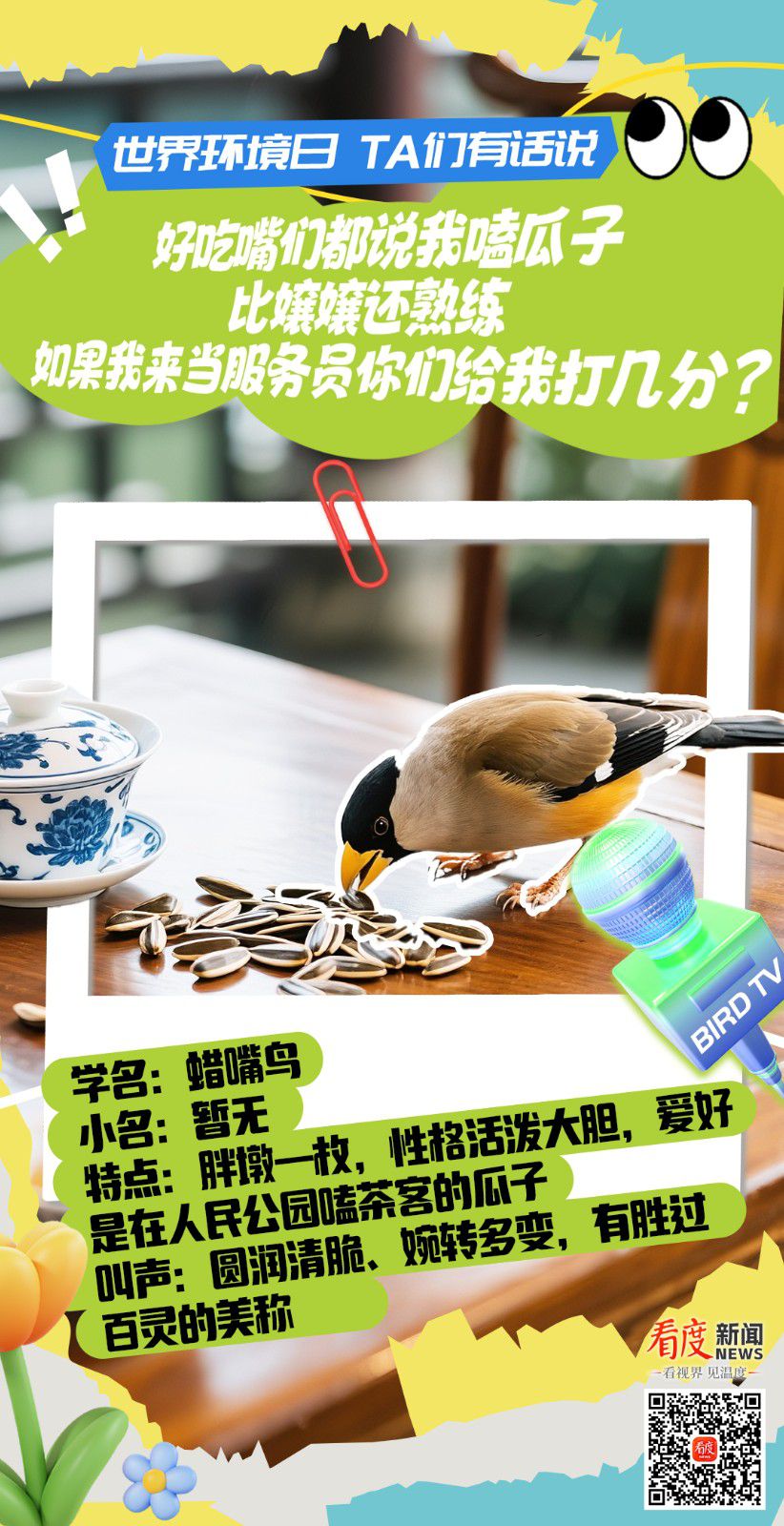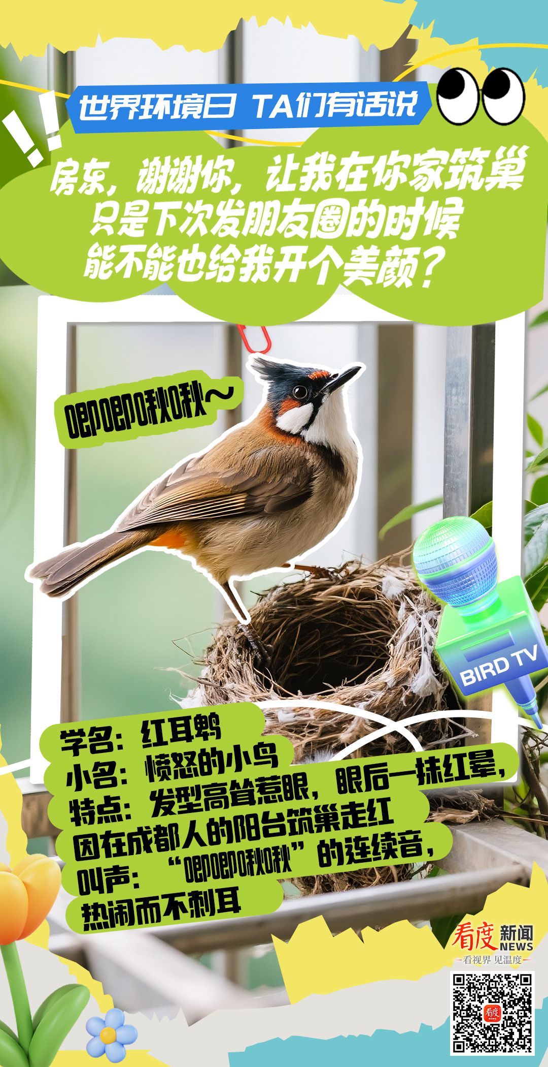 近年来,随着我国生物多样性保护取得显著成效、人们生态环境保护意识提高,爱鸟、护鸟已成为人们的广泛共识和自觉行动。成都是一座全民爱鸟、护鸟的城市。最好的打鸟装备,从来不是长焦镜头,而是为鸟儿们保留的那寸永不撤离的绿色。这个环境日,或许能把观鸟镜对准更辽阔的命题:生物多样性保护、气候变化应对、海洋污染治理、城市生态修复、塑料污染防治等。我们能做的,从 “观赏者” 到 “守护者”,就是将 “环保” 从口号变为可触摸的日常。